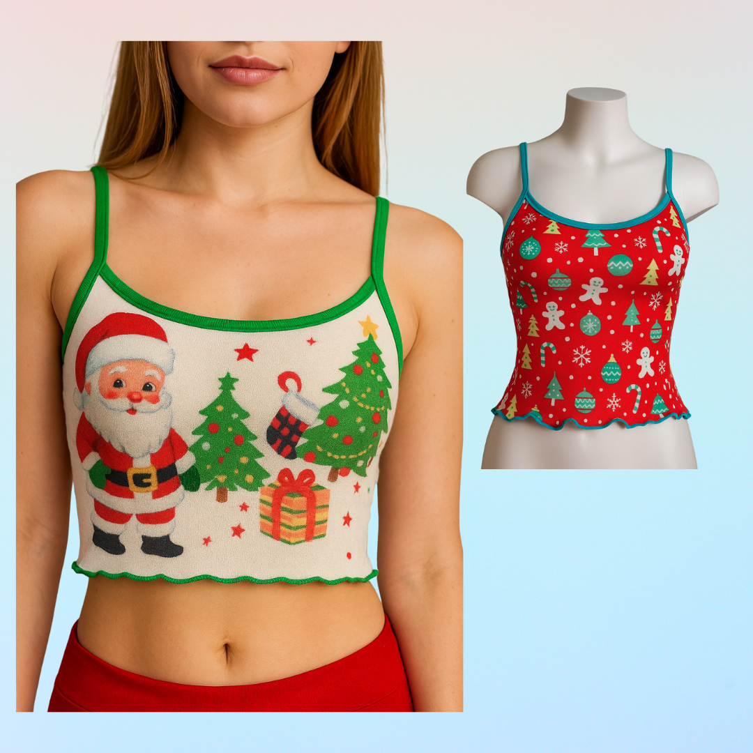 Molde Camiseta Navideña de Tirantes – 2 largos (XS a XL)Una prenda versátil y festiva 🎄✨. Perfecta como mañanita ligera para usar en casa o como camiseta de tirantes ajustada al cuerpo. Incluye dos opciones de largo: Corto tipo crop top juvenil. Largo clásico hasta la cadera.