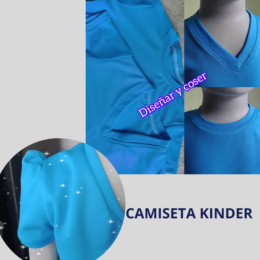 -Confeccion camiseta básica kinder: Cuello redondo y Cuello V, manga normal y manga bombacha