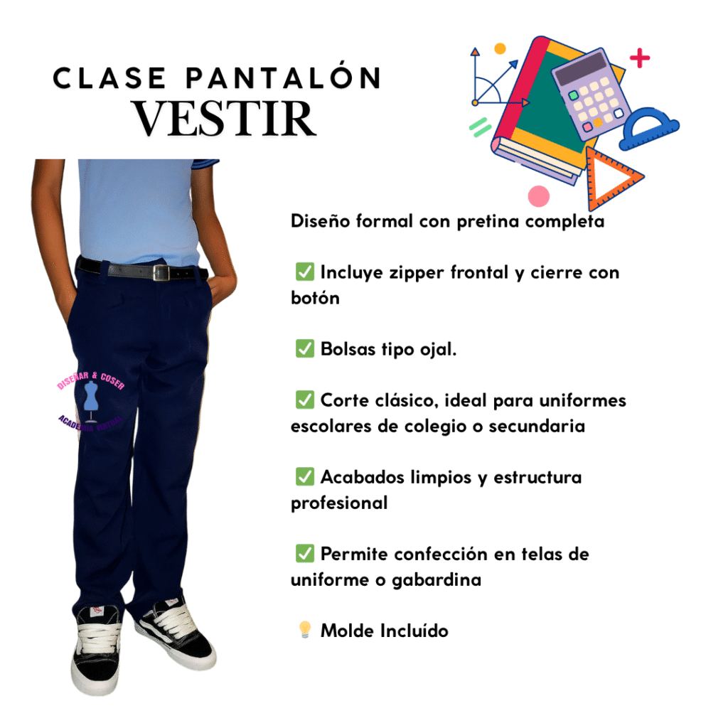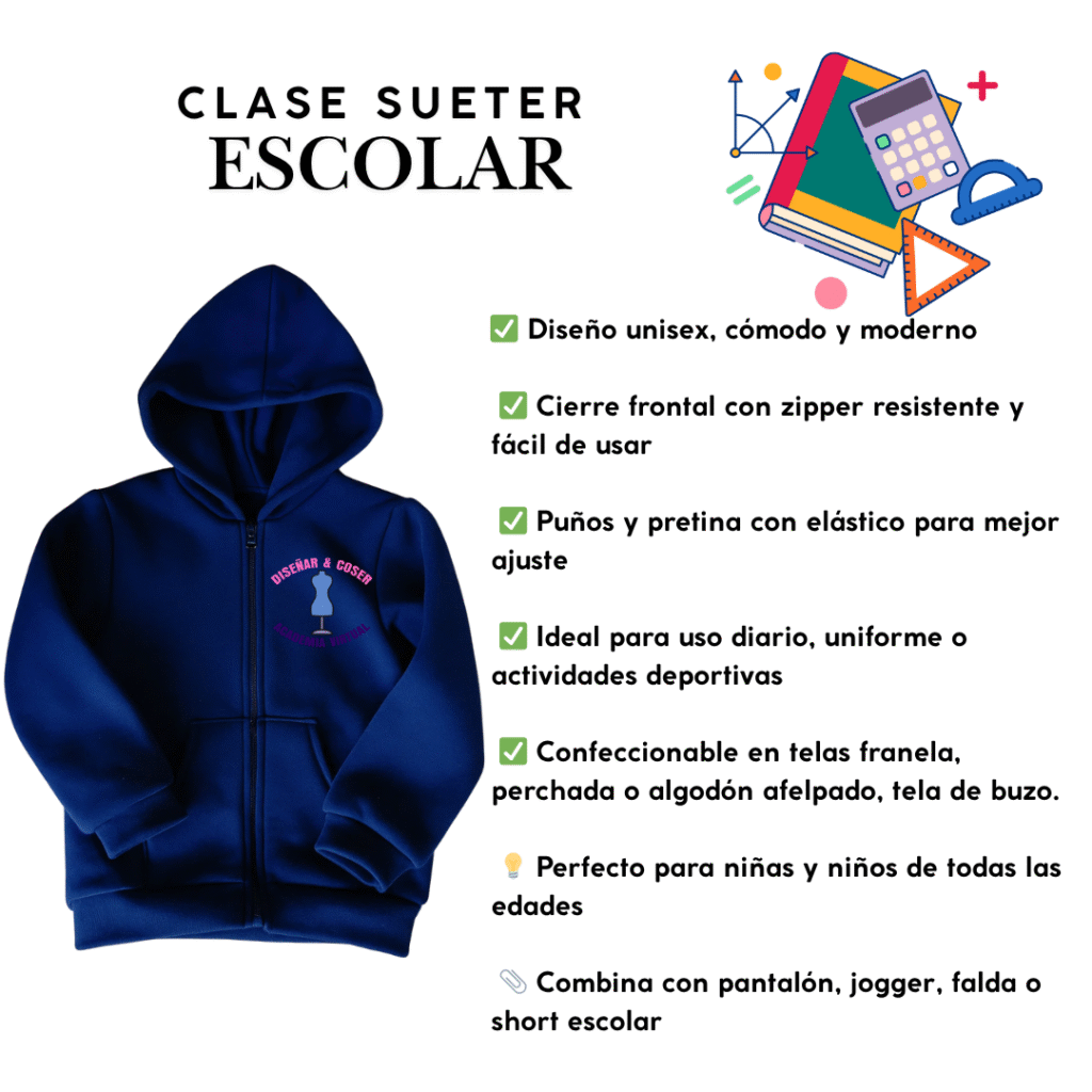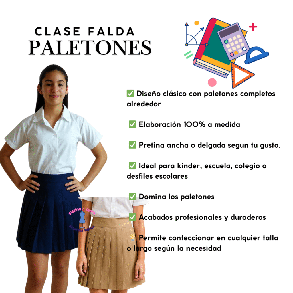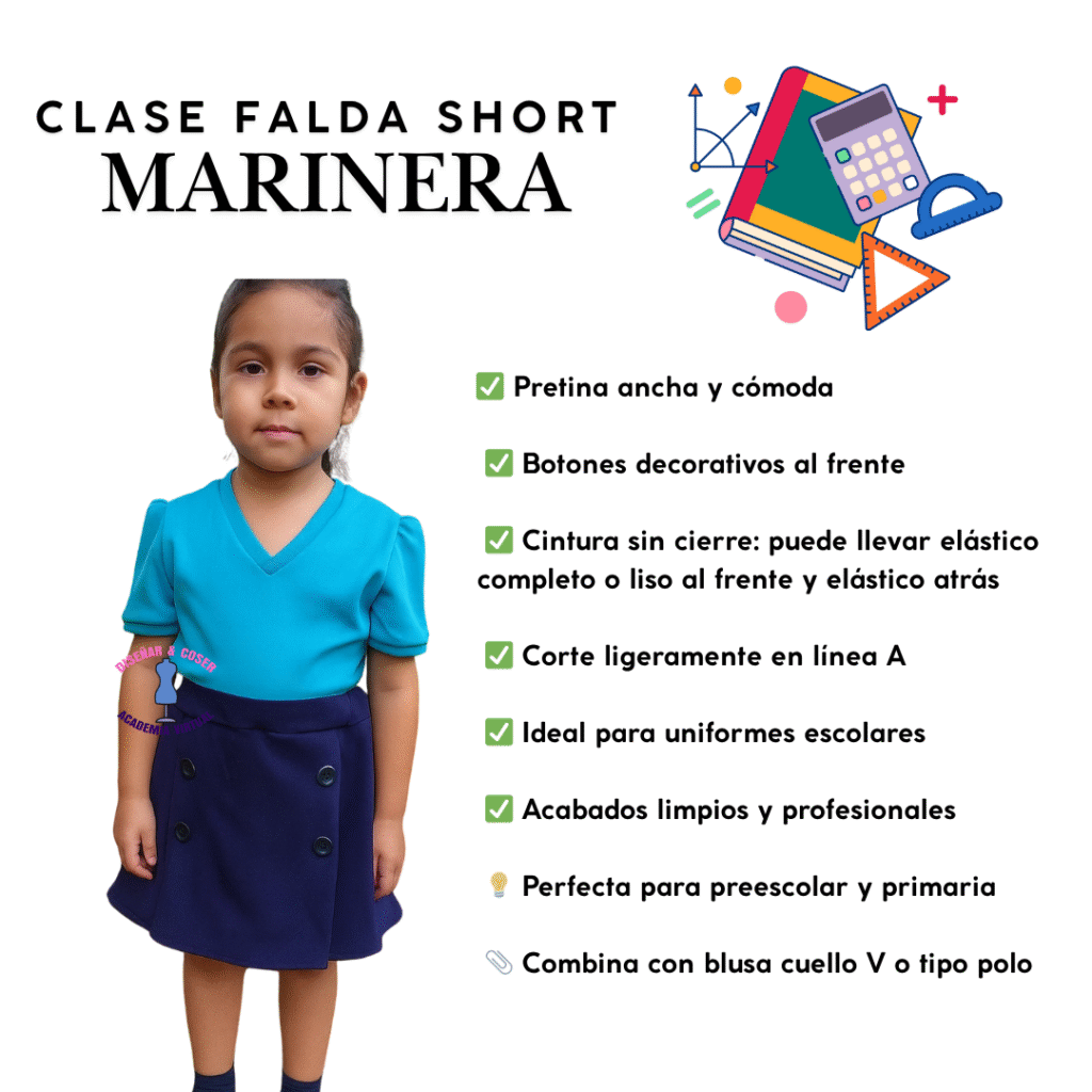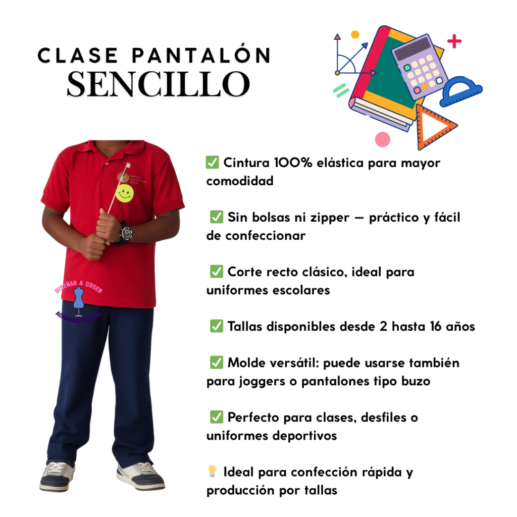 Accedé de por vida al curso completo — sin mensualidades — y aprendé a confeccionar 6 tipos de faldas, 3 pantalones, 2 shorts, camisetas escolares, de kinder y suéter. Todo con clases paso a paso, moldes listos y asesoría personalizada durante tu proceso. 💙