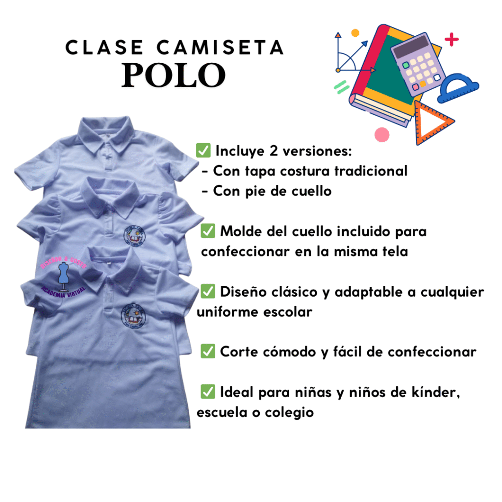 Camisetas tipo polo confeccionadas para su hija, utilizando nuestros moldes y la clase paso a paso.